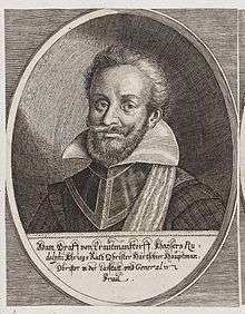 Adam von Trautmannsdorf (1579 - 1617), kaiserlicher Kämmerer und oberster Kriegsrat, general of the Croatian and Austrian Littoral. Commander in chief of the Archduke in Friuli during the Uskok War. He arrived in Gorizia December 27, 1615, and ordered his headquarters at Rubia where he died, shot while visiting the trenches on June 7, 1617 [1]