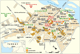 According to the official Ottoman data, there were a total of 3,521 casualties in Adana city. Of these, 2,093 were Armenians, 782 Muslims, 613 Assyrians and 33 Greeks.[23] Government figures are based on records of the registry office, and lists compiled by Mukhtars and priests of certain localities. It goes without saying government authorities resorted to every means to hide the real number of Christian victims.[23]