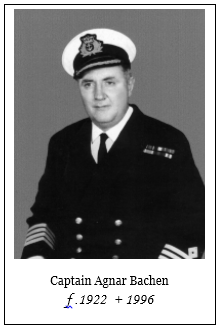 Born in Hoybakken near Trondheim, Norway 1922, Bachen was the third son and youngest child of Captain Hans Petter Bachen. Following in his father’s footsteps Bachen started his maritime career at the age of 14 when he stowed away aboard his uncle’s windjammer cargo ship. He rapidly worked his way up through the ranks to become bosun. Thereafter Bachen attended maritime college and became one of the youngest officers to gain a Master’s ticket. Later during routine trips to the port of Liverpool Bachen met and married Englishwoman Edna Price. The couple settled in Wallasey, Merseyside, England where they had four children. Bachen finally ended his career working out of the port of Hong Kong as senior Master Mariner responsible for officer training.