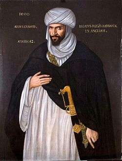 Ahmad I al-Mansur (Arabic: أحمد المنصور السعدي, also El-Mansour Eddahbi [the Golden], Arabic: أحمد المنصور الذهبي; and Ahmed el-Mansour; 1549 in Fes[1] – 25 August 1603, outskirts of Fes[2][3]) was Sultan of the Saadi dynasty from 1578 to his death in 1603, the sixth and most famous of all rulers of the Saadis. Ahmad al-Mansur was an important figure in both Europe and Africa in the sixteenth century, his powerful army and strategic location made him an important power player in the late Renaissance period.