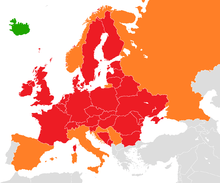 However, Naviair assessed that it is safe to fly through airspace in high altitude – 35,500 feet (10,800 m). This means that aircraft such as Japan to New York can fly over Denmark.[40] Danish airspace will be closed until 02:00 on 21 April.[41] |