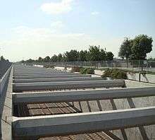 The project is notable for the Mid-Corridor Trench, a below-ground, triple-tracked rail line that is 10 miles (16 km) long, 33 feet (10 m) deep, and 50 feet (15 m) wide,[3] shared by the BNSF Railway and Union Pacific Railroad (UP)[1] via trackage rights. The Alameda Corridor allows trains to bypass 90 miles (140 km) of early 20th-century branch lines and the Atchison, Topeka & Santa Fe Railway's historic Harbor Subdivision along a high-speed grade-separated corridor, built mainly on the alignment of a former Southern Pacific Railroad (SP) line, avoiding more than 200 street-level railroad crossings where automobiles previously had to wait for lengthy freight trains to pass.[4] Many of those same rail lines were inadequately protected with little more than “wigwag” crossing signals dating from the original construction of the lines. One important use of the corridor is to carry cargo containers to and from the ports. The corridor has a maximum speed of 40 miles per hour (64 km/h).