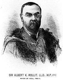 Sir Albert Kaye Rollit (1842 12 August 1922) was a British politician, lawyer, and businessman.