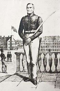 Upon his graduation from the United States Military Academy at West Point, New York in 1806, Partridge received the rank of lieutenant of engineers and an appointment at the academy as an assistant professor of mathematics.[4] In its early days, the post served both as the academy for training prospective officers and the headquarters of the United States Army Corps of Engineers, and the superintendent was also chief of engineers. In 1808 chief engineer Jonathan Williams promoted Partridge to professor of mathematics and delegated to him the responsibilities of acting superintendent.[5] Partridge set an example for physical fitness during his administration, frequently leading the cadet corps on extended marches in New York and neighboring states. Never profane or intemperate, superintendent Partridge required cadets to attend church services, occasionally preparing and delivering the sermon on Sundays.[6] Named professor of engineers in 1813,[7] and officially appointed as superintendent in 1814,[5] "Old Pewt" developed a reputation among academy faculty as a martinet, often micromanaging subordinates, and occasionally demonstrating preference toward favorite cadets.[8]