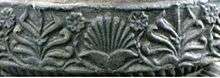 The scope of adoption goes from designs such as the bead and reel pattern, the central flame palmette design and a variety of other moldings, to the life-like rendering of animal sculpture and the design and function of the Ionic anta capital in the palace of Pataliputra.[15]