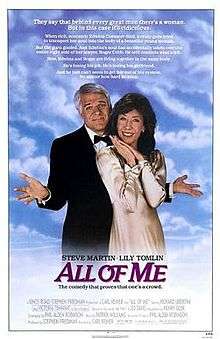 All of Me is a 1984 American fantasy comedy film directed by Carl Reiner and starring Steve Martin and Lily Tomlin. This film is based on the unpublished novel Me Two by Edwin Davis.[1]