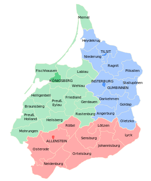 | Neidenburg | Neidenburg (Nidzica)[3] | 1,157 km2 (447 sq mi) | 39,486 (1939) |