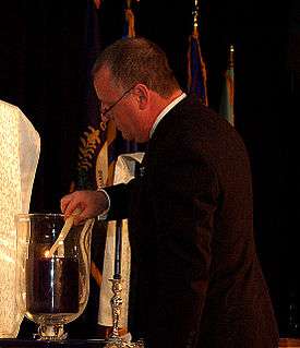 In the United States, the fraternity is headquartered out of a National Office located at 14901 E. 42nd St., Independence, Missouri 64055-7347. The building was dedicated on November 17, 1990, following a four-year fundraising campaign during the 1980s.[48] Fundraising for the building continued during the early 1990s, through matching gifts and a national fundraising event entitled, "Burn the Mortgage", raising over $28,000. Thanks to these donations, the fraternity paid the 10 year mortgage in only four years, and National President Jerry Schroeder ceremonially burned the mortgage at the 1994 National Convention in Dallas – Fort Worth, Texas.[49]
