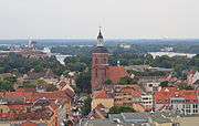 The Altstadt is situated on the west bank of the River Havel by its confluence with the River Spree. It was protected from attack by the Spandau Citadel, on an island between the two rivers.[1]