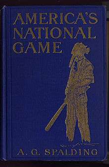 America's National Game is a book by Albert Spalding, published in 1911 detailing the early history of the sport of baseball. Much of the story is told first-hand, since Spalding had been involved in the game, first as a player and later an administrator, since the 1850s. In addition to his personal recollections, he had access to the records of Henry Chadwick, the game's first statistician and archivist. Spalding was, however, known to aggrandise his role in the major moments in baseball's history.