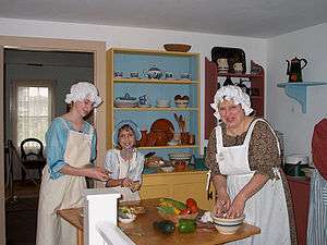 The Museum's docents and volunteers provide a living history experience for visitors. Cooks work on the cast-iron 19th-century stove in Elliott House. The stove was specially cast for the Museum from an original mold produced by a local ironworks.