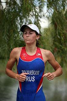 Anastasiya Sergeyevna Polyanskaya, née Yatsenko (Russian: Анастасия Сергеевна Полянская Яценко; her first name is also transliterated as Anastasia by the ITU; born 5 February 1986 in Zhovti Vody)[1] is a professional Ukrainian and Russian triathlete, Russian Supersprint Champion of the year 2009[2] and 2010,[3] and permanent member of the Russian National Team.[4]