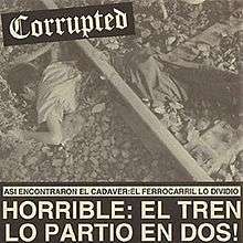 Anciano (Spanish for old man) for is an EP by the Japanese doom metal band Corrupted. Because the Spanish phrase "Horrible: El Tren Lo Partio En Dos!" ("Horrible: The Train Ripped Him In Two" in English) appears on the cover, that phrase is often mistaken to be the title of the EP.[1] The album was pressed four times, the last two times of which included a different color setting for the album's cover. While the first and second pressing was black and white, the third pressing was blue and the fourth pressing was brown.[2] All editions were released on 7-inch vinyl. "The Post War Dream" is a cover of the Pink Floyd song that opens their 1983 album The Final Cut.