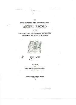 - ↑ "HISTORY OF THE COMPANY (SUMMARY)". Ancient and Honorable Artillery Company of Massachusetts. Retrieved 10 September 2012.