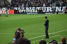 On 26 March 2012, Inter manager Claudio Ranieri was sacked and Stramaccioni was promoted to manager of the first team as caretaker,[10] with Giuseppe Baresi returning to act as assistant coach.[11] He led Inter to sixth place and a success in the Derby della Madonnina against Milan that cost Inter's crosstown rivals the Serie A title; his results led club owner Massimo Moratti to confirm him as head coach for the 2012–13 season, as well.[12] The FIGC allowed Stramaccioni to sign the contract without a UEFA Pro Licence as he was admitted to 2012–13 coaching course in order to obtain the licence in June 2013. On 3 November 2012, Stramaccioni guided Inter to a 3–1 away victory over the previous season's champions, Juventus, claiming "[The] result will send a signal, as we came here to the Juventus Stadium against a team unbeaten in 49 rounds and attacked them with a trident". After 14 months in charge of Inter and a difficult 2012–13 Serie A campaign which saw them finish in 9th place and thus fail to qualify for Europe for the first time in 15 seasons, the club announced on 24 May 2013 that Stramaccioni had been sacked and replaced by Walter Mazzarri.[13][14]