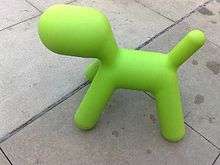 The green Android was joined early on by Alex, a dog of similar colour and design. It was actually a toy chair Puppy by Eero Aarnio. This statue was stolen in 2009.[11]