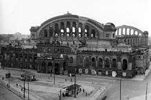 The Anhalter Bahnhof is a former railway terminus in Berlin, Germany, approximately 600 metres (0.5 mi) southeast of Potsdamer Platz. Once one of Berlin's most important railway stations, it was severely damaged in World War II, and finally closed for traffic in 1952, when the GDR-owned Deutsche Reichsbahn rerouted all railway traffic between Berlin and places in the GDR avoiding the West Berlin area. The station's name lives on in the Berlin S-Bahn station of the same name, opened in October 1939 as part of the North-South S-Bahn link.