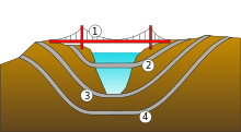Water-spanning structures: 1: Suspension bridge 2: Submerged floating tunnel 3: Immersed tube 4: Undersea tunnel