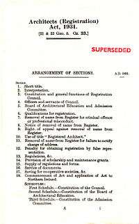 - An Act to provide for the Registration of architects and for purposes connected therewith.