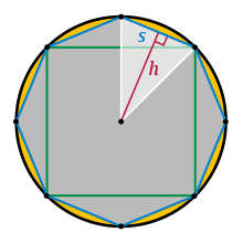This for n = 48 gives a better approximation (about 3.14159292) than Archimedes' method for n = 768.