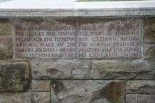 The land on which this cemetery stands is the gift of the Italian people for the perpetual resting place of the sailors, soldiers & airmen who are honoured here