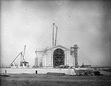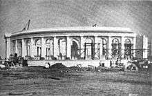 It immediately became apparent, however, that although Congress had authorized the expenditure of $250,000 for Memorial Amphitheater, it had not actually appropriated any such funds from the U.S. Treasury. This left the AMAC without any funds to conduct its business.[12] It was not until August 1, 1914, that Congress finally appropriated money for the amphitheater's construction.[13] Ten days later, Colonel William W. Harts of the United States Army Corps of Engineers was elected the commission's executive director. On October 12, 1914, the AMAC contracted with the New York-based architectural firm of Carrère and Hastings to design the building. The AMAC hired the George A. Fuller Co. to construct it on February 11, 1915.[14][15]