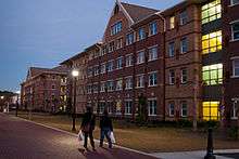 More than 1,400 students live on campus in four residential communities located in the southwest portion of the campus.[7] Windward Commons is Armstrong's suite-style freshmen residential community which opened in 2010 and is home to nearly 600 students.[11] It features private and semiprivate suites, music practice rooms, multipurpose classrooms, lounges/social areas, laundry facilities, courtyards with outdoor sitting space and barbecue areas, and two classrooms—all designed to make the campus experience the best it can be.[7] Compass Point, University Terrace, and University Crossings are apartment-style residence halls for upperclassmen and graduate students.[7]