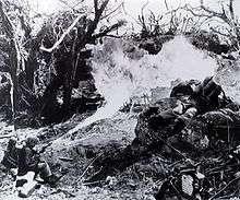 The Chemical Warfare Service deployed and prepared gas weapons for use throughout the world during World War II. However, these weapons were never used in combat.[13] Despite the lack of chemical warfare during the conflict, the CWS saw its funding and personnel increase substantially due to concerns that the Germans and Japanese had a formidable chemical weapons capability. By 1942 the CWS employed 60,000 soldiers and civilians and was appropriated $1 billion.[13] The CWS completed a variety of non-chemical warfare related tasks and missions during the war including producing incendiaries for flame throwers, flame tanks and other weapons. Chemical soldiers were also involved in smoke generation missions. Chemical mortar battalions used the 4.2 inch chemical mortar to support armor and infantry units.[14]