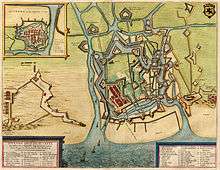 Farnese was ultimately removed as governor, being replaced by Peter Ernst I von Mansfeld-Vorderort in 1592 and Archduke Ernest of Austria in 1594. By the time Archduke Albert of Austria – the husband of Isabella of Spain was given custody of the Netherlands by the Spanish king in 1595, the Dutch north appeared to be an increasingly independent country, protected by the able military commander Maurice of Orange and his Dutch States Army. The Dutch continued to consolidate their control over various towns through a sequence of successful sieges, whilst the Army of Flanders saw itself increasingly pointed southwards, against France, being used as a strike force in 1590 and 1592, and fighting to take Cambrai (1595) and Calais (1596).[43] Despite the failure of the Army to reoccupy the north, it continued to the end of the period as an effective fighting force, with its campaigns in 1605 and 1606 being notable for their 'vitality' and vigour.[44]