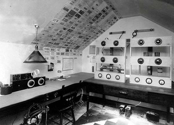 A young Arthur Collins' attic ham station; his radio communication was a critical link to the outside world for the 1925 MacMillan Expedition to the subarctic.