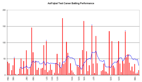 Asif Iqbal was born in the city of Hyderabad, and is related to former India captain Ghulam Ahmed and Indian tennis star Sania Mirza.[1] He was a right-handed batsman and an effective right-arm medium bowler for Pakistan, Hyderabad, Karachi, Kent, National Bank of Pakistan and Pakistan International Airlines. After learning his cricket in Hyderabad, India, he emigrated to Pakistan in 1961, where he opened the bowling with swing bowling before concentrating on batting that was noted for its footwork and cavalier cover-driving.[2] Asif Iqbal was also the captain of Pakistan at the inaugural Cricket World Cup in 1975 and 1979 being the first person to lead Pakistan to the semi-finals of the world cup in 1979.