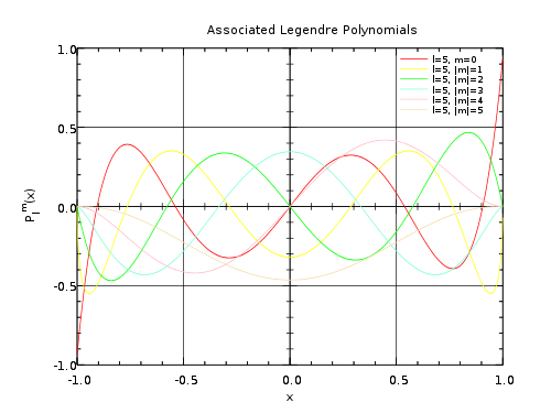 where the complex numbers λ and μ are called the degree and order of the associated Legendre functions, respectively. The Legendre polynomials are the associated Legendre functions of order μ=0.