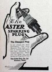 Aster was a major supplier of automobile components to both vehicle manufacturers and end users. As shown in its advertising and exhibition stands, both the French parent and the English associate were suppliers of : engines, gear boxes, gears, chassis, steering gear, radiators, spark plugs, magnetos, coils, accumulators, Oleo plugs, C.M.F. and lubricators.[22]