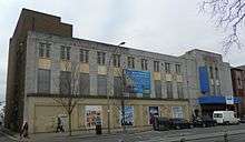 The Astoria Theatre is a former cinema in Brighton, part of the English coastal city of Brighton and Hove. Built in 1933 in the Art Deco style for a local entertainment magnate who opened one of Brighton's first cinemas many years earlier, it was the first and most important expansion of the Astoria brand outside London. It initially struggled against the town's other "super-cinemas", but enjoyed a period of success in the 1950s and 1960s before rapid decline set in, culminating in its closure in 1977. About 20 years of use as a bingo hall followed, but the building—whose clean lines give "a sense of spacious grandeur"[1] in a prominent city-centre site—has stood empty since the late 20th century and has passed through several owners. Permission was granted in 2012 for its demolition and replacement with an energy-efficient business centre designed by Conran and Partners, but it still stands as of 2016. English Heritage has listed the building at Grade II for its architectural and historical importance.