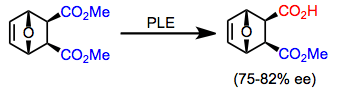 7-Oxabicyclo[2.2.1]heptane-2,3-dicarboxylates are an interesting class of diesters that are hydrolyzed by PLE with high enantioselectivity.[11] These substrates have been used for the enantioselective construction of biologically relevant sugars (see Synthetic Applications below).