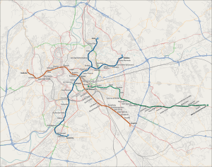 Rome has an urban transport network which consists of buses, trams, rapid transit lines, light rail lines and suburban railways.