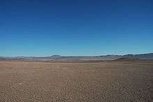 The Coastal Cliff of northern Chile west of the Chilean Coast Range is the main topographic feature of the coast.[11] The geomorphology of the Atacama Desert has been characterized as a low-relief bench "similar to a giant uplifted terrace" by Armijo and co-workers.[12] The intermediate depression (or Central Valley) forms a series of endorreic basins in much of Atacama Desert south of latitude 19°30’ S. North of this latitude the intermediate depression drains into the Pacific Ocean.[13]