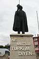 Atatürk's memory remains a major part of Turkish politics and society into the 21st century.[6] Almost every city in Turkey has streets named for him, and statues of him are commonly found in city squares, schools, and public offices, the latter two of which feature his portrait. The phrase Ne mutlu Türküm diyene (How happy is the one who says "I am a Turk"), which Atatürk used in his speech delivered for the 10th Anniversary of the Republic in 1933, is used widely in Turkey and is often seen along with his statues.