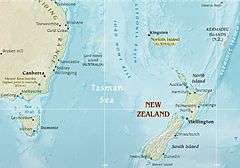 Australia–New Zealand relations, also referred to as Trans-Tasman relations ("relations across the Tasman Sea"), are extremely close with both sharing British colonial heritage as Antipodean White Dominions and settler colonies as well as being part of the wider Anglosphere.[1] New Zealand sent representatives to the constitutional conventions which led to the uniting of the six Australian colonies but opted not to join; still, in the Boer War and in World War I and World War II, soldiers from New Zealand fought alongside Australians. In recent years the Closer Economic Relations free trade agreement and its predecessors have inspired everconverging economic integration. The culture of Australia does differ from the culture of New Zealand and there are sometimes differences of opinion which some have declared as symptomatic of sibling rivalry.[2] This often centres upon sports such as rugby union or cricket[3] or in commercial tensions such as those arising from the failure of Ansett Australia or those engendered by the formerly[4] long-standing Australian ban on New Zealand apple imports.