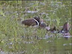 Breeding painted-snipe prefer temporary but recently flooded wetlands, with low cover for shelter, shallow water and exposed mud for feeding, and small islands on which to nest. They nest in ground scrapes or on mounds in water, lined with grass, leaves and twigs, where they lay clutches of 3-4 cream-coloured eggs marked with black streaks. Incubation takes 15–16 days. The young are precocial and nidifugous.