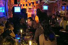 In photography and cinematography, available light or ambient light refers to any source of light that is not explicitly supplied by the photographer for the purpose of taking photos. The term usually refers to sources of light that are already available naturally (e.g. the sun, moon, lightning) or artificial light already being used (e.g. to light a room).[1] It generally excludes flashes, although arguably flash lighting provided by other photographers shooting simultaneously in the same space could be considered available light. Light sources that affect the scene and are included in the actual frame are called practical light sources, or simply practicals.[2]