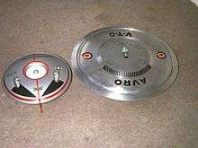 The Avro Canada VZ-9 Avrocar was a VTOL aircraft developed by Avro Aircraft Ltd. (Canada) as part of a secret U.S. military project carried out in the early years of the Cold War.[2] The Avrocar intended to exploit the Coandă effect to provide lift and thrust from a single "turborotor" blowing exhaust out the rim of the disk-shaped aircraft to provide anticipated VTOL-like performance. In the air, it would have resembled a flying saucer.