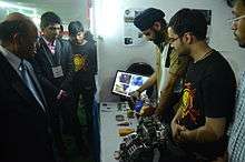 AXIS'14: The three-day 'Biped Bot' workshop concerned itself with the construction of a walking robot and programming of an Arduino microprocessor. Participants used their creativity to make the root waddle, kick and perform jumping splits. The workshop on 'Internet of Things' focused on automation of daily household appliances using RaspberryPi. An outstation workshop wherein students learnt about Sixth Sense Robotics on Arduino was conducted in Jabalpur.