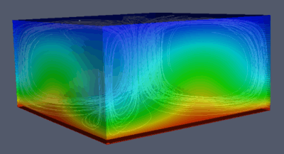 Simulation of Rayleigh–Bénard convection in 3D.