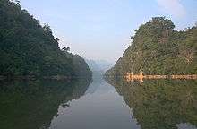Widow Island is a small, cone-shaped islet near the centre of the southern part of the lake. According to local legend, the islet was once the home of an old widow who was spared from a flood through divine intervention.[18] Other well known caves include Puông Cave, Nả Poỏng, Ba Cửa Cave, Sơn Dương Cave and the Kim Hỷ nature reserve.