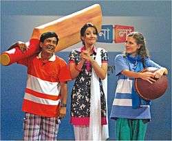 BBC Janala Mojay Mojay Shekha is an educational game show teaching English[1] which seeks to motivate audiences to learn English through fun.[2] The game show has a partner programme Bishaash, a supernatural detective drama series.[3] The game show builds on the English used in the drama in order to help teach the language.[4]
