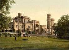 Babelsberg Palace (German: Schloss Babelsberg) lies in the eponymous park and quarter of Potsdam, the capital of the German state of Brandenburg, near Berlin. For over 50 years it was the summer residence of Prince William, later Emperor William I and his wife, Augusta of the House of Saxe-Weimar-Eisenach.