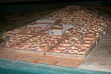 Baelo Claudia is situated on the northern shore of the Strait of Gibraltar. The town was founded in the end of the 2nd century BC as a result of trade with North Africa (it was a major port for Tangier, in Mauretania Tingitana, for example). It is possible that Baelo Claudia had some functions of governmental administration, but tuna fishing, salting, and the production of garum were the primary sources of wealth.[1] The city was eventually successful enough to be granted the title of municipium by Emperor Claudius.