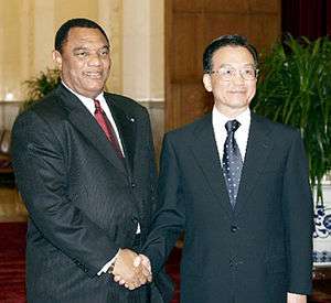 Bahamas–China relations refers to bilateral between the People's Republic of China and the Bahamas. Diplomatic relations were established on May 23, 1997.[1] Less than two months later, the Chinese government opened up an embassy in Nassau, on the island of New Providence.[1] The government of The Bahamas has not established an embassy in Beijing, although in 1999 Dr. Arthur Foulkes was appointed the first non-resident ambassador.[1] Prime Minister Hubert Ingraham became the first Bahamian head of government to visit China in 1997.[1]