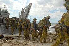 Between 1997 and 2003, the LCHs were used to support the Peace Monitoring Group (PMG) in Bougainville, under Operation Bel Isi.[12] Ships deployed on this operation were involved in resupplying the PMG base in Loloho, transport of PMG personnel and humanitarian aid, and coastal patrols.[12] From 1999 onwards, the Balikpapans were also tasked with supporting INTERFET operations in East Timor, particularly those relating to the Oecussi enclave.[12] The increase in operational tempo was a major factor in the reactivation of Wewak in 2000.[12] In 2003, the landing craft began supporting RAMSI operations in the Solomon Islands.[12]
